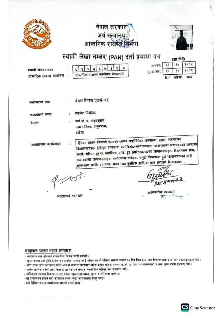 Dénomination légale : Jungle Nepal Adventure Pvt. Ltd.